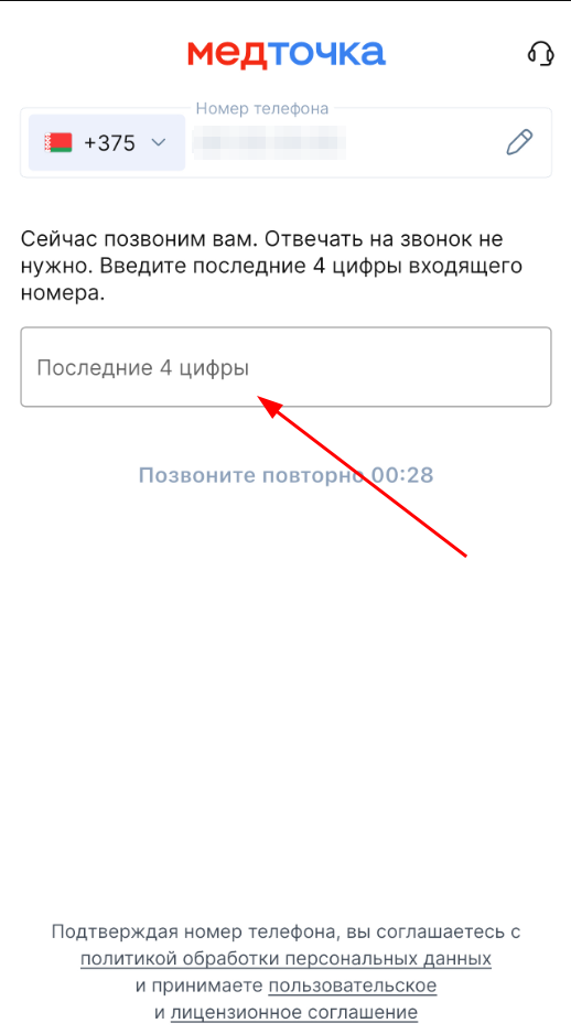Запомните последние 4 цифры звонящего номера телефона и введите их в специальное поле.