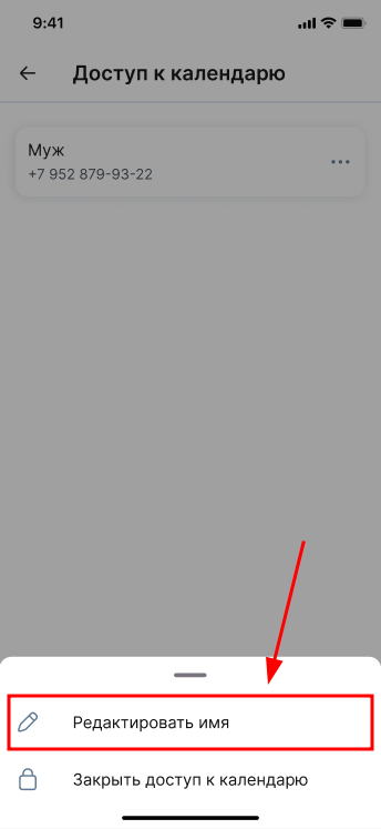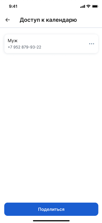 Обратите внимание: поделиться календарём можно только с пользователями из вашей страны, так как код страны в номере телефона определяется автоматически. Имя контакта должно быть написано на русском языке и содержать не менее двух букв.