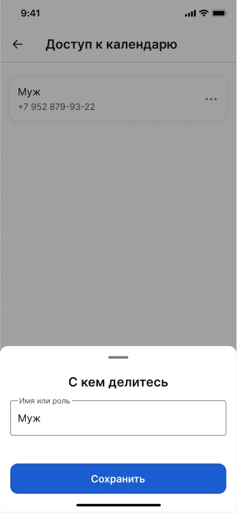 В приложении вы можете поделиться своим «Женским календарём» с близким человеком. Это может быть партнёр, мама или любой человек, которому доверяете.