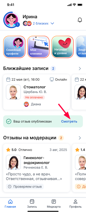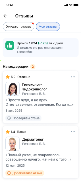 Отзывы, которые вы писали на ПроДокторов о враче или клинике, можно увидеть в МедТочке.