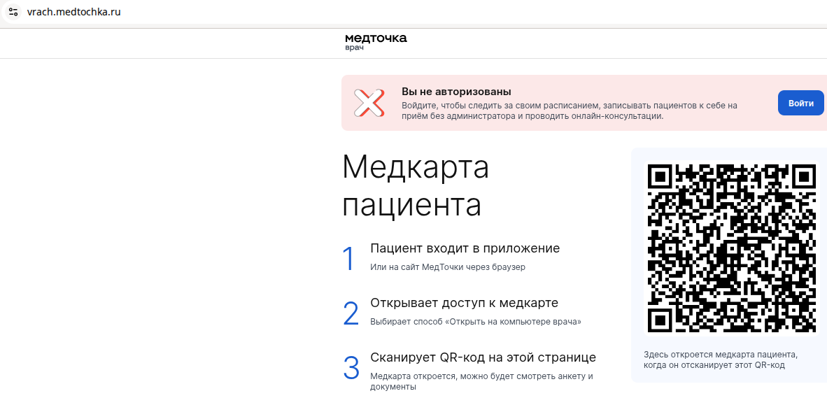 - Если пациент в МедТочке открыл доступ к просмотру медкарты для врача