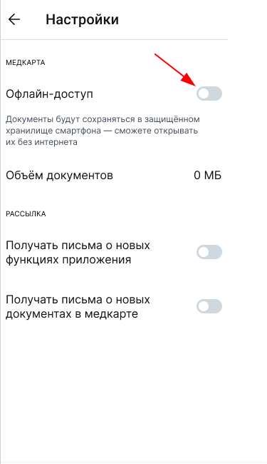 Маңызды! Сізге клиникадан жіберілген қаралмаған құжаттар автоматты түрде офлайн қоймада сақталмайды. Құжаттың офлайн режимінде қол жетімді болуы үшін оны смартфонда интернет қосулы күйде ашқаныңызға көз жеткізіңіз.