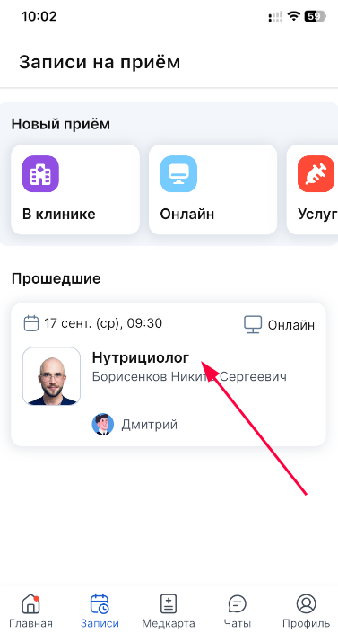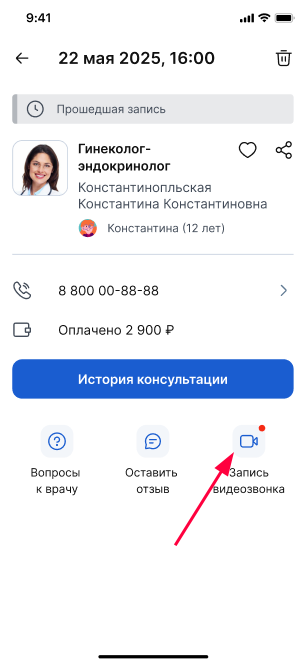 Видеозапись появится после завершения онлайн-консультации в деталях прошедшей записи.