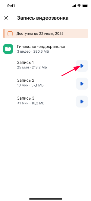 Важно! Если вы и врач не отключались во время консультации, у вас будет только 1 файл для просмотра. Если же один из участников отключался и позже вернулся, файлов может быть несколько, но все они относятся к одной онлайн-консультации.